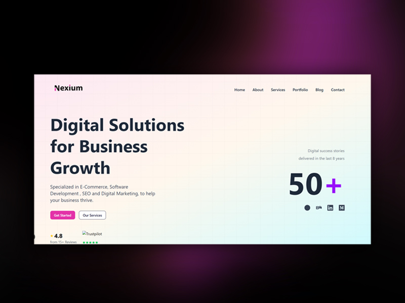 Nexium is a modern digital design agency portfolio built with Next.js and Tailwind CSS. It features a fully responsive, clean UI with pages for home, services, about, blog, portfolio, and contact. The project includes reusable components, a consistent layout, and interactive elements like testimonials and contact forms. It showcases the agency’s digital offerings with a focus on design, usability, and professionalism.