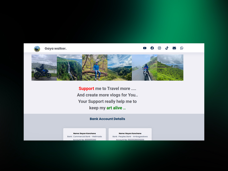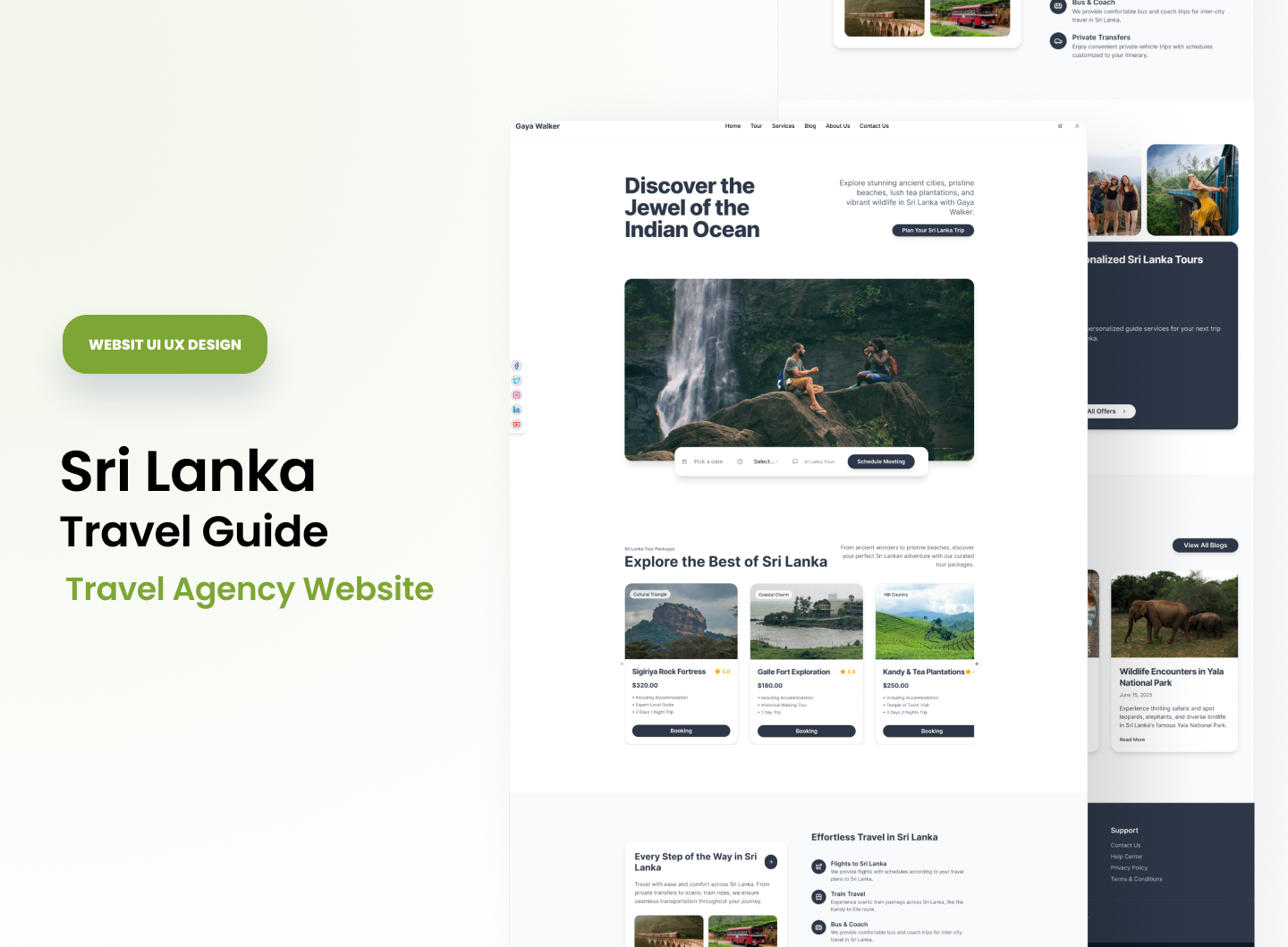 Explore the captivating travel experience of Sri Lanka through our modern, elegant, and responsive website design for Gaya Walker — a premium travel agency.