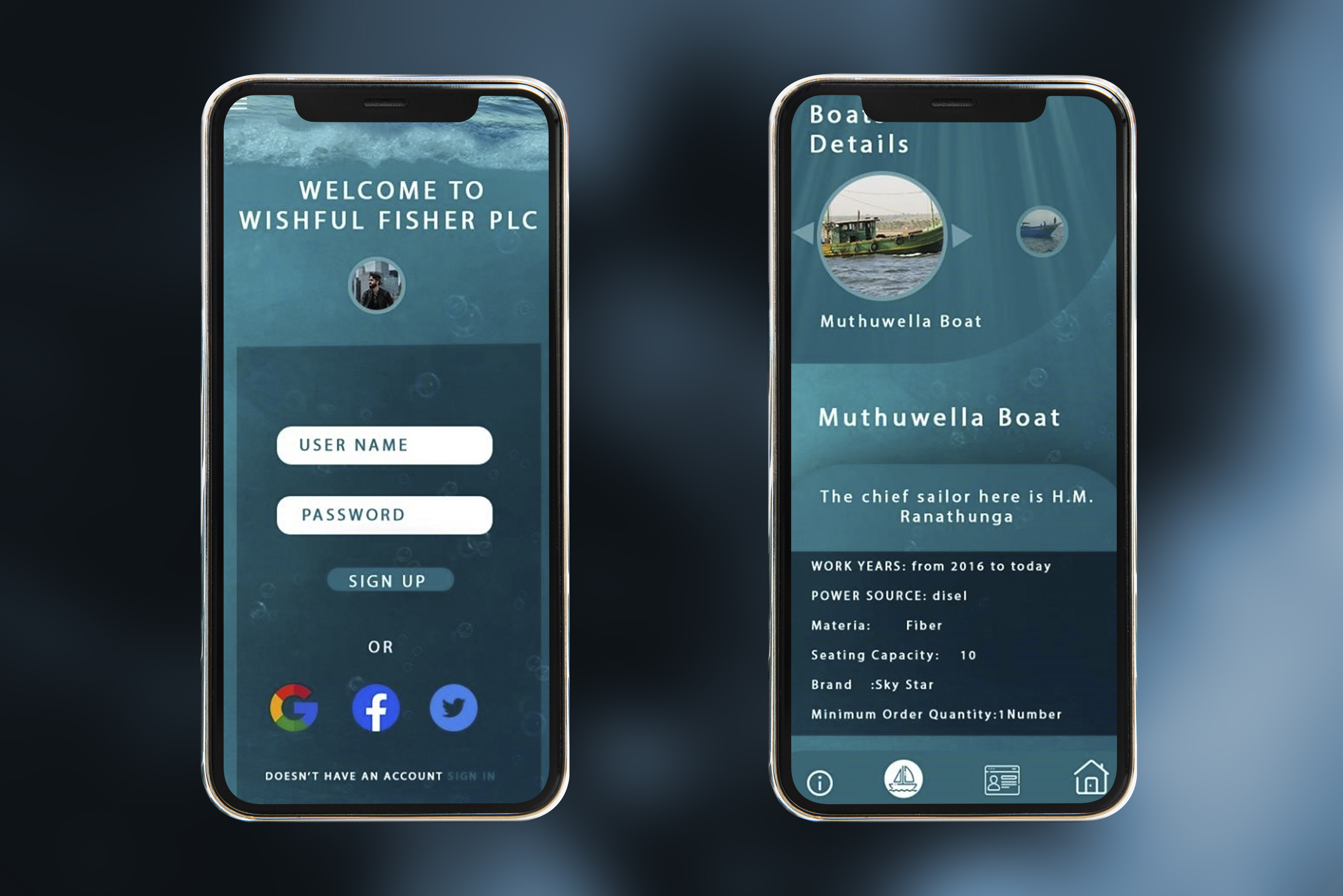 Designed a user-friendly mobile app UI/UX using Adobe XD, tailored for fishermen. It includes detailed information and a tracking system to simplify their tasks.
